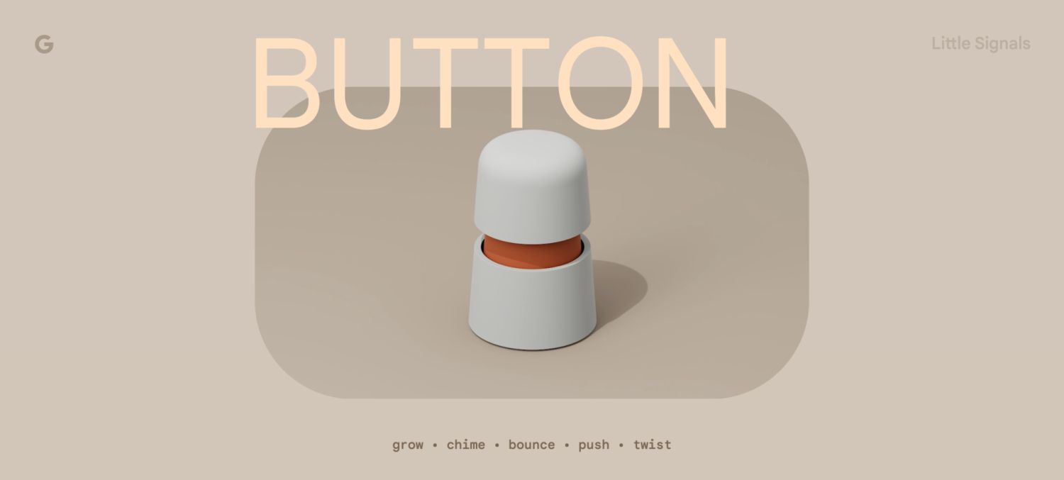 El botón combina escala y sonido para comunicarse y brindar control. La parte superior gira (a la derecha para más detalles, a la izquierda para menos) y crece a medida que recibe información. Reproduce un tono cuando está lleno.