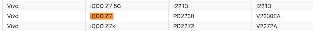 Como se puede ver en la captura de pantalla a continuación, el iQOO Z7i apareció con su número de modelo V2230EA en la lista de dispositivos compatibles con Google. La lista sugiere que puede lanzarse en el mercado global.