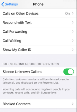 Si las llamadas están silenciadas, puede verificar si aparecen en su correo de voz o en la Lista de Recientes. Para apagarlo, simplemente vaya a Configuración de iPhone> Teléfono> Silenciar llamadas desconocidas.